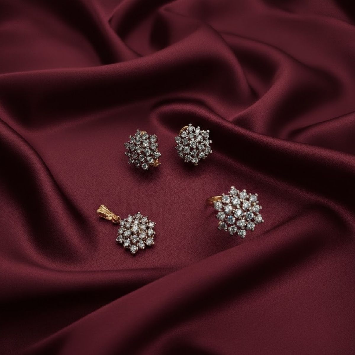 Goldplated Hand-set, precision-cut cubic zirconia (or crystal) designed to mimic the fire and clarity of natural diamonds with fine finishing. Perfect for gifting, lunch dates, or festive occasions.