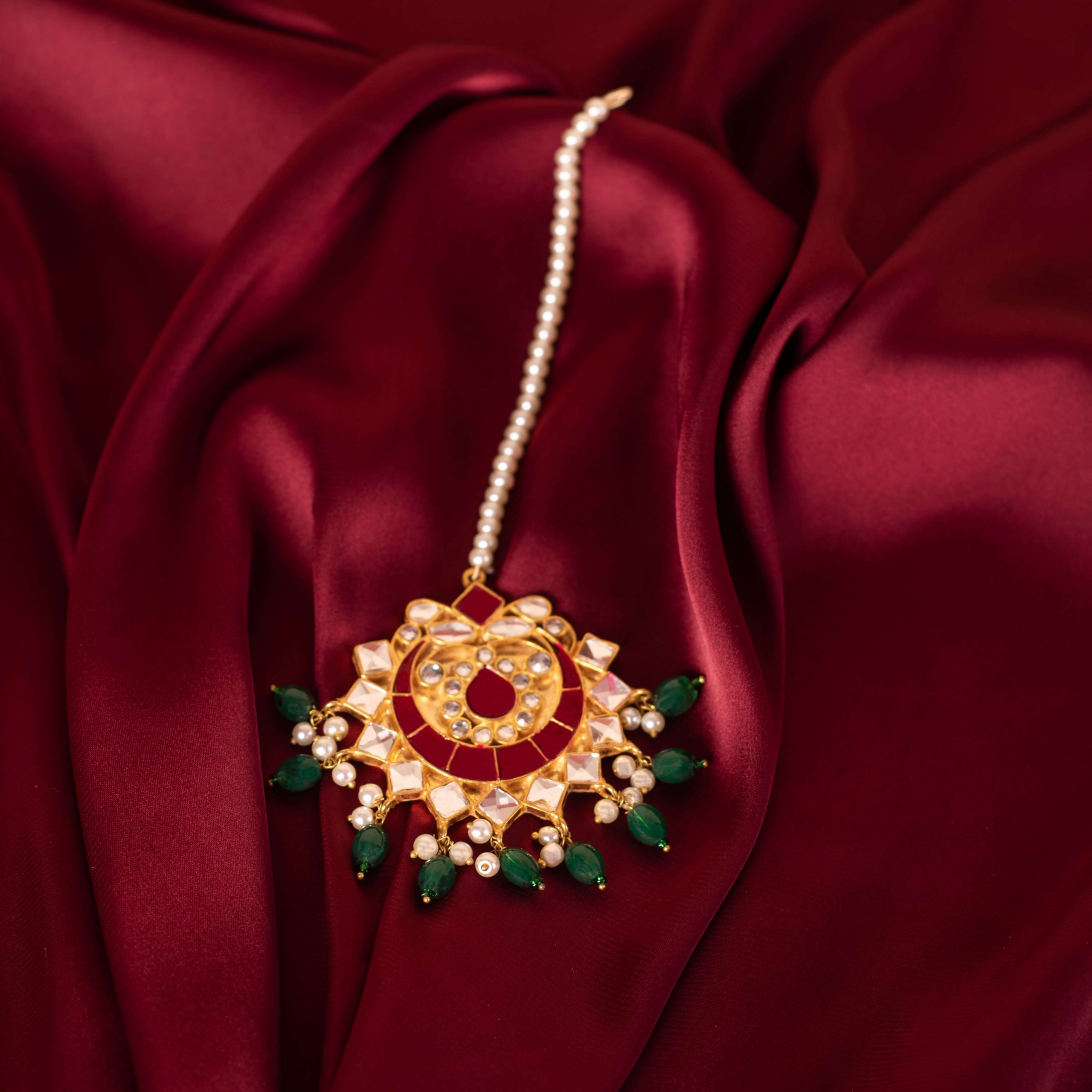 For customizations for Bindia in terms of stone color and pearls color, please add details in additional notes before confirming the order.