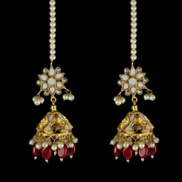• Gold-plated Sheesha Kundan choker engraved with ruby stones, kundan stones with finishing of natural and ruby pearls.