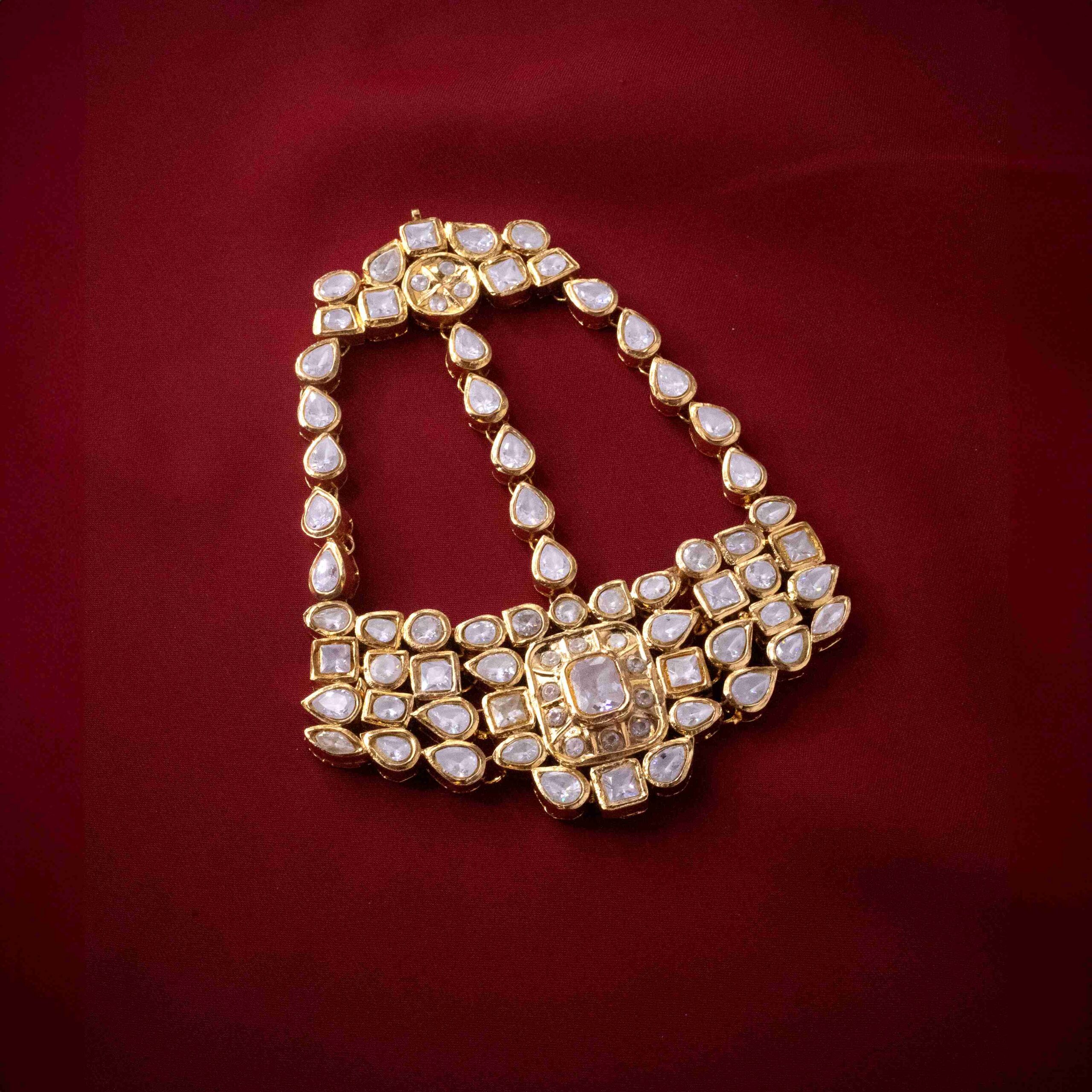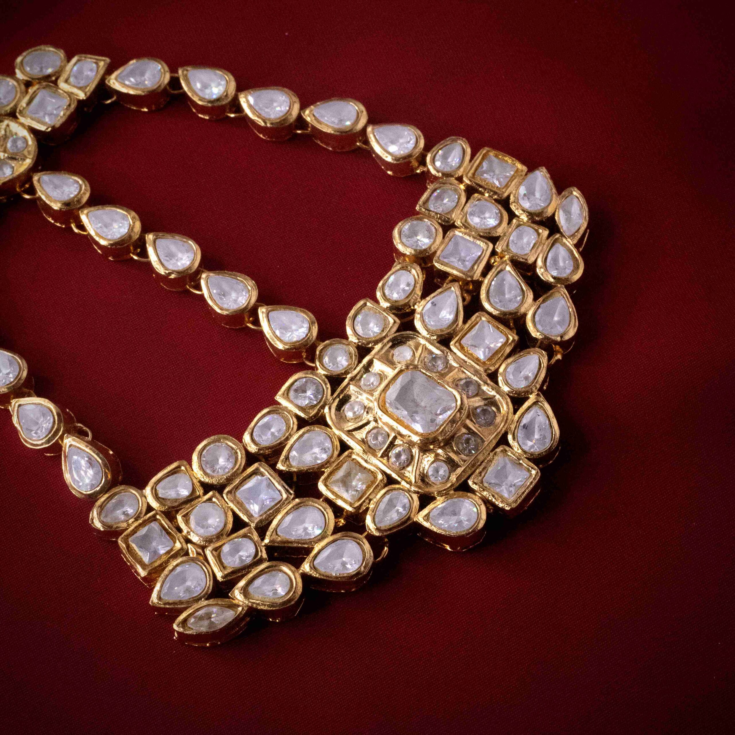 • Gold-plated handworked gutka kundan Jhumar finely embedded with real zircon stones.