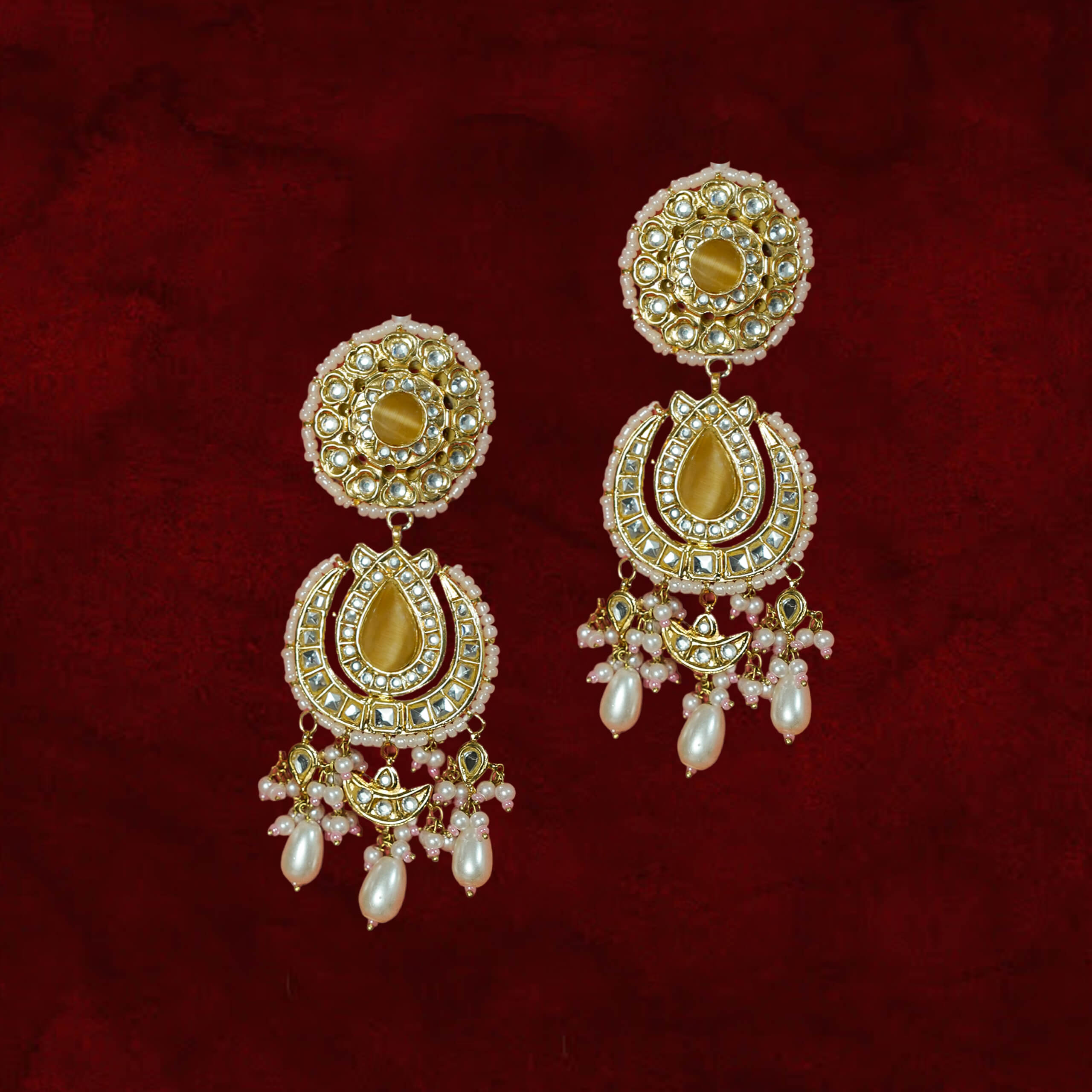 For customizations for Earrings in terms of stone color and pearls color, please add details in additional notes before confirming the order.