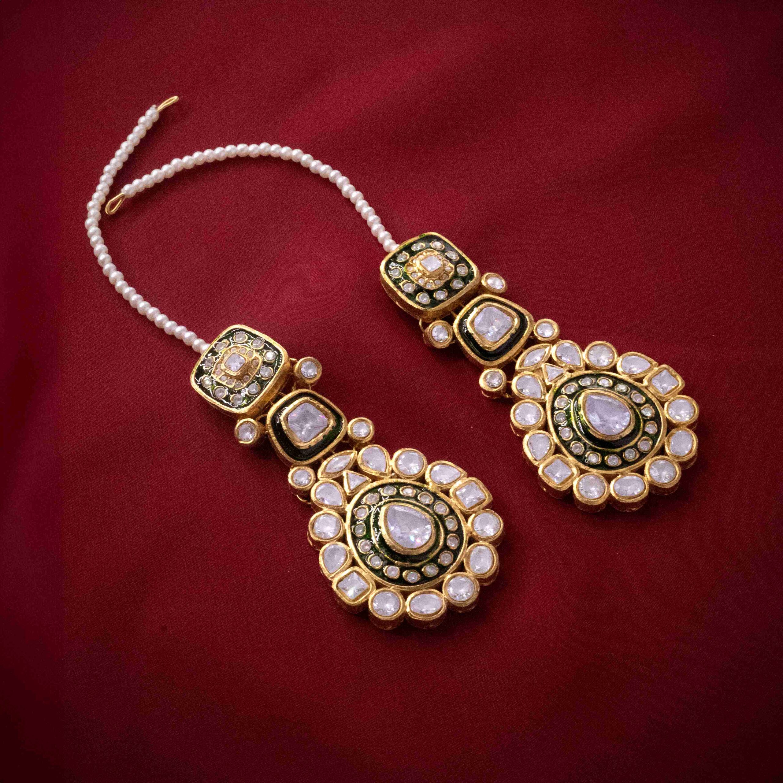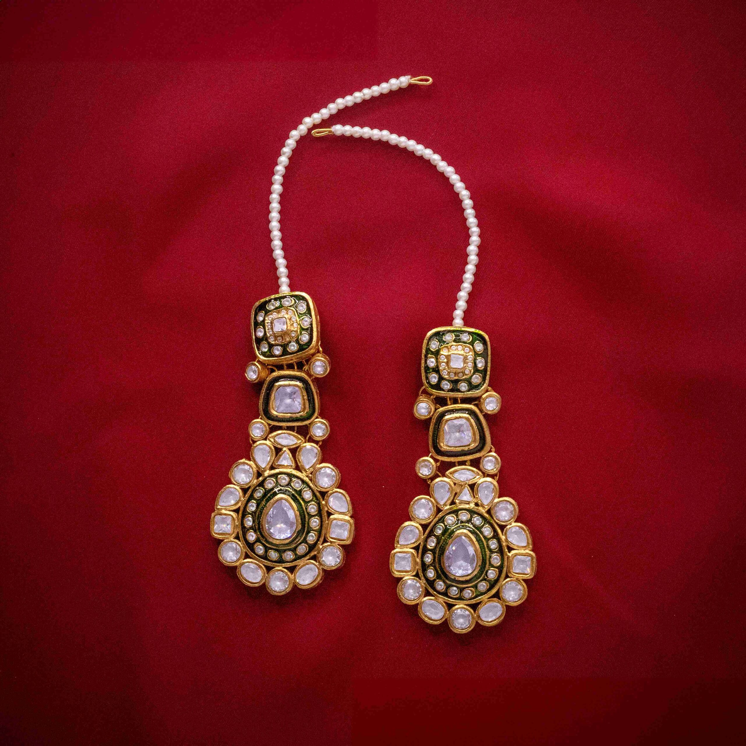 Color of pearls and meena for earrings can be customized. All major colors are available for customization.