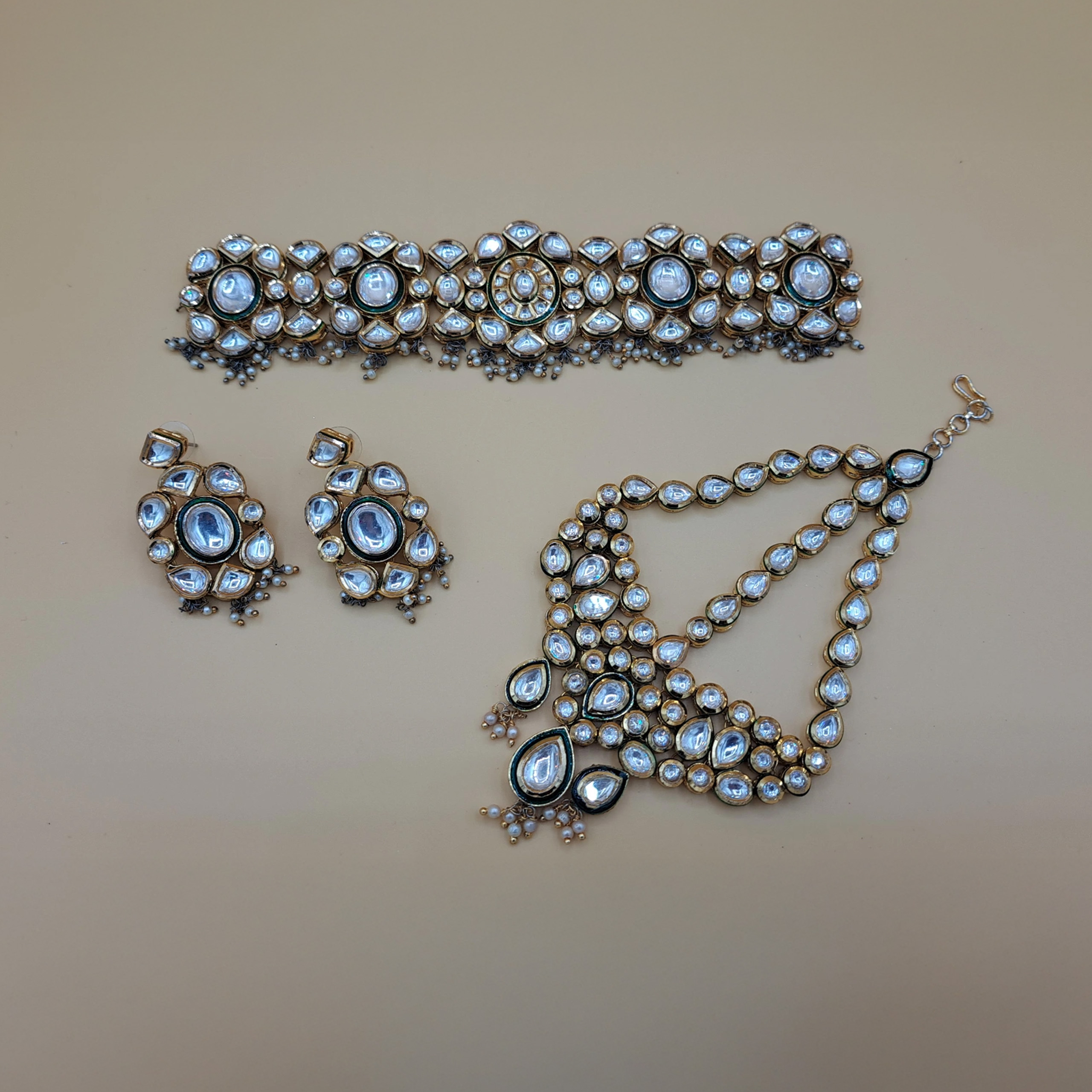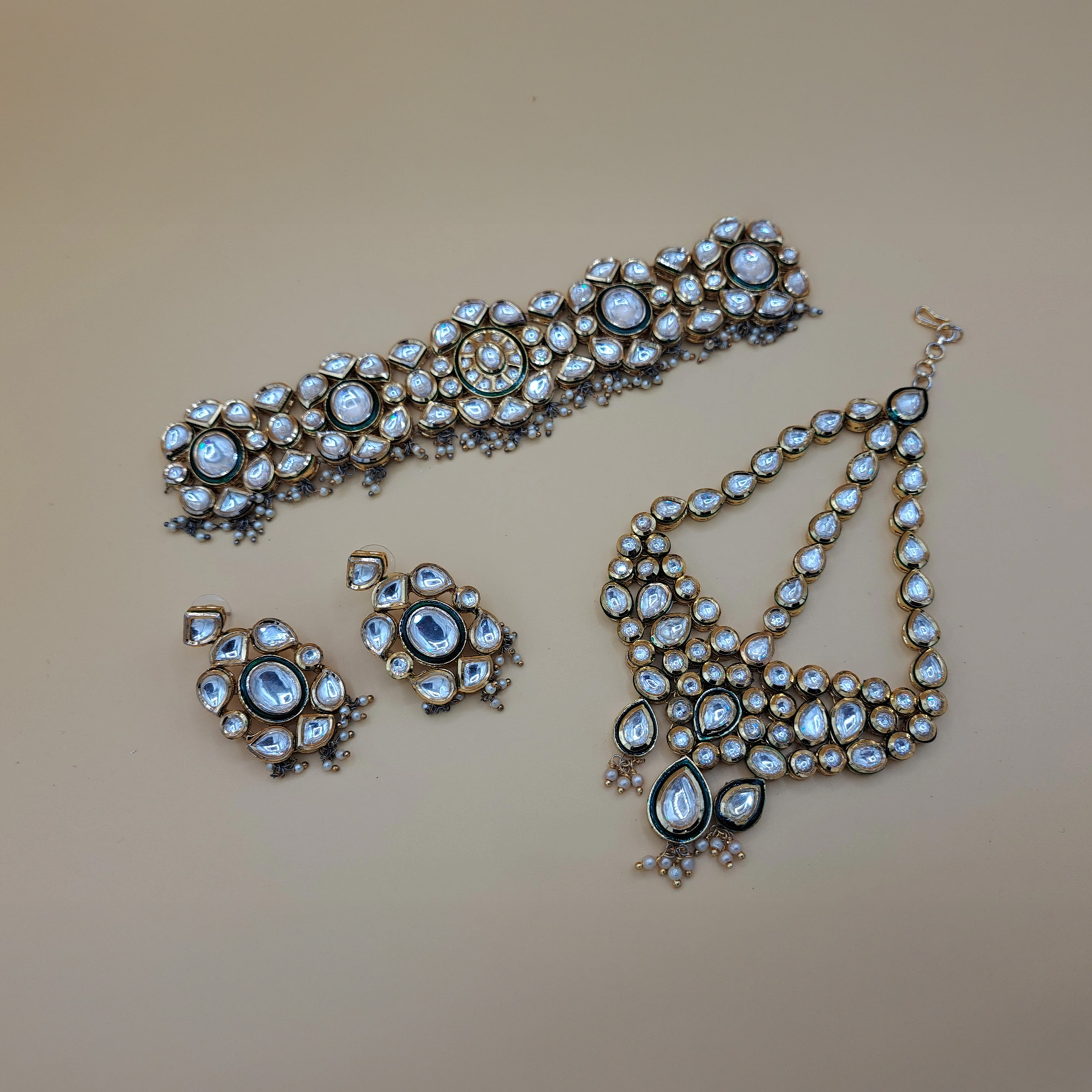 -Gold-Plated handworked Indian kundan judao worked choker set embedded with Real kundan stones And pearls.