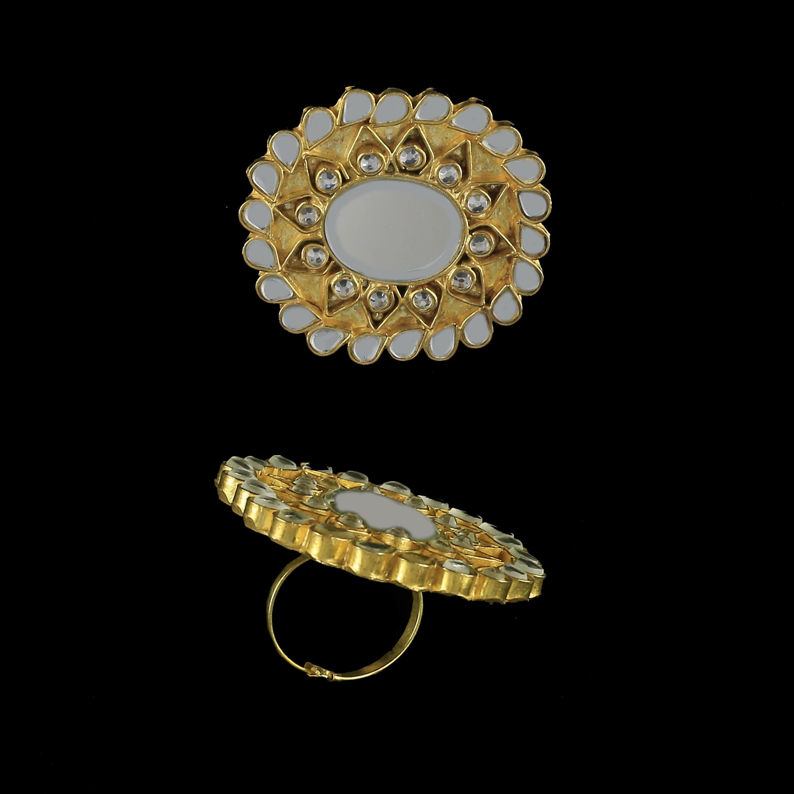 For customizations for Ring/Hand Piece in terms of stone color and pearls color, please add details in additional notes before confirming the order.