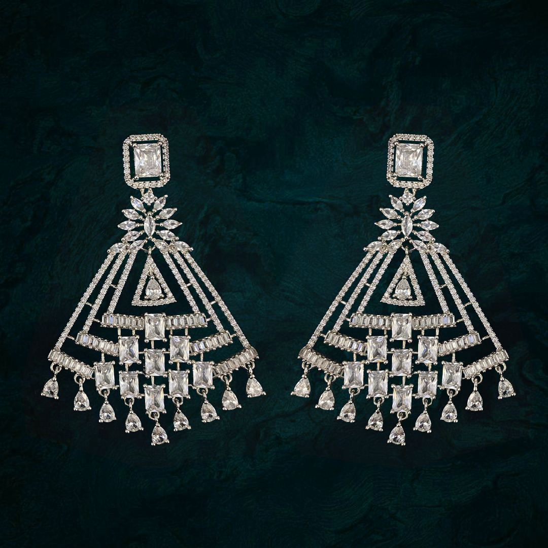 • Silver Plated hand-worked Earrings embossed with White Zircon Stones.