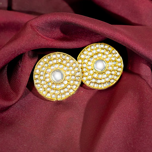 Gold-plated thappa kundan studs embossed with fine kundan stones.