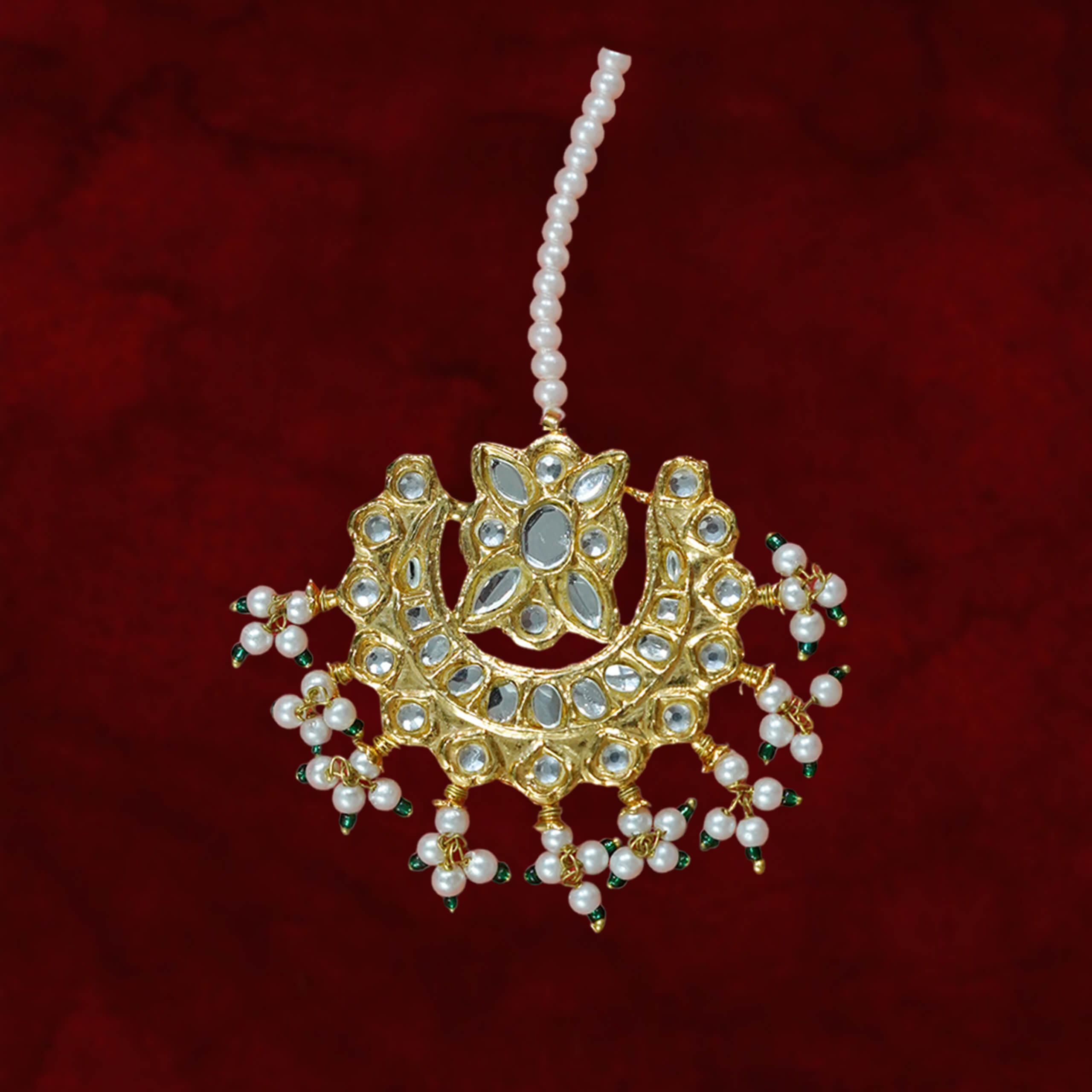 For customizations for Bindia in terms of stone color and pearls color, please add details in additional notes before confirming the order.