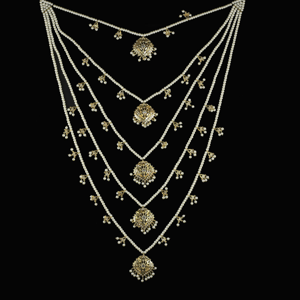 For customizations for Neckpiece in terms of stone color and pearls color, please add details in additional notes before confirming the order.